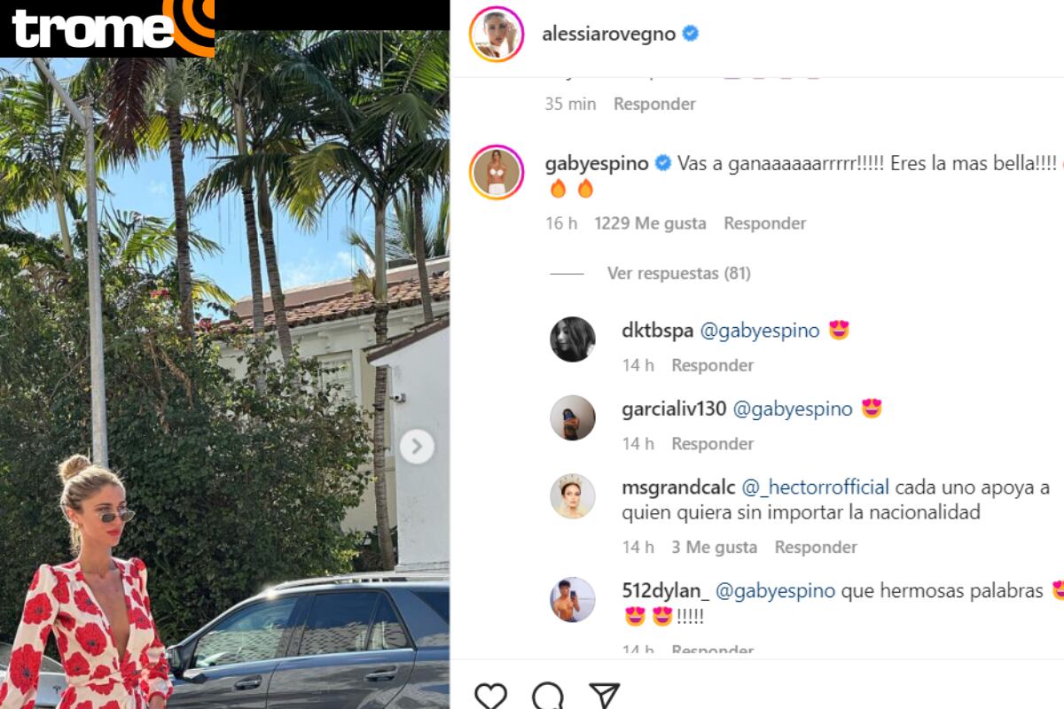 En su mensaje que dejó en los comentarios, Espino se mostró segura de que la hija de Bárbara Cayo sería la ganadora del certamen internacional y se llevaría la corona de la más bella del mundo. “¡Vas a ganar! ¡Eres la más bella!”, escribió la también empresaria en la cuenta de Instagram de Alessia Rovegno.