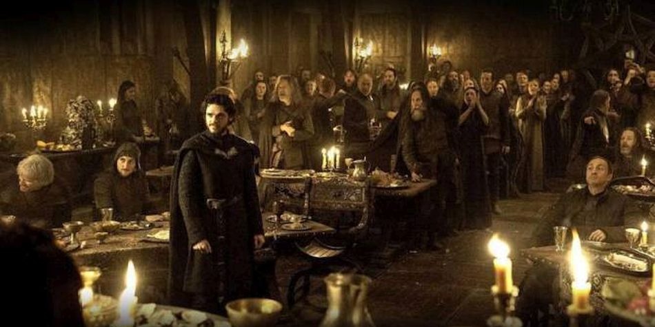 En la espectacular escena mueren Robb, su esposa Talisa que estaba embarazada, Lady Catelyn, y la mayoría de los hombres del Stark. Las mentes maestras tras la masacre fueron en realidad Tywin Lannister que conspiró con Frey y Lord Roose Bolton para traicionar a los norteños.