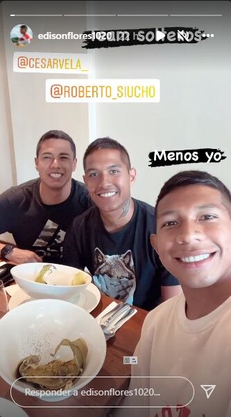 A través de Instagram, el mediocampista publicó una foto en sus historias junto a su cuñado, Roberto Siucho y un amigo suyo, de nombre César Vela. Los tres almorzaban antes de que Flores viaje a Estados Unidos para reintegrarse al DC United.