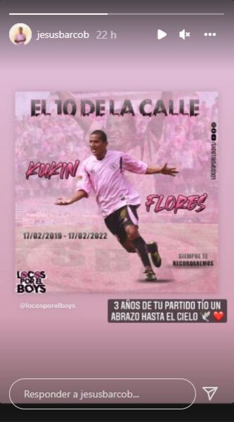 El defensa del Sport Boys compartió una imagen en sus historias de Instagram, donde conmemoran los 3 años del fallecimiento de Carlos ‘Kukín’ Flores, quien fuera el ídolo y crack de la ‘Misilera’.