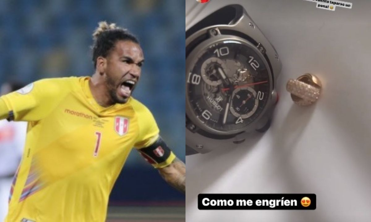 “Cómo me engríen. Sale a cuenta taparse un penal. Gracias @jefferson_farfan_oficial y @trauco92″, escribió Pedro Gallese encima de la foto de un reloj de marca Hublot y una argolla para la oreja.