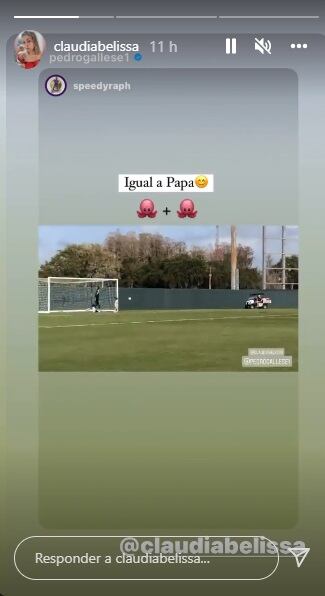 De acuerdo a un video de Instagram que compartió el ‘Pulpo’ en sus historias, se le ve a su hija contener un remate al arco con mucha solvencia y sin sentir la fuerza del balón.