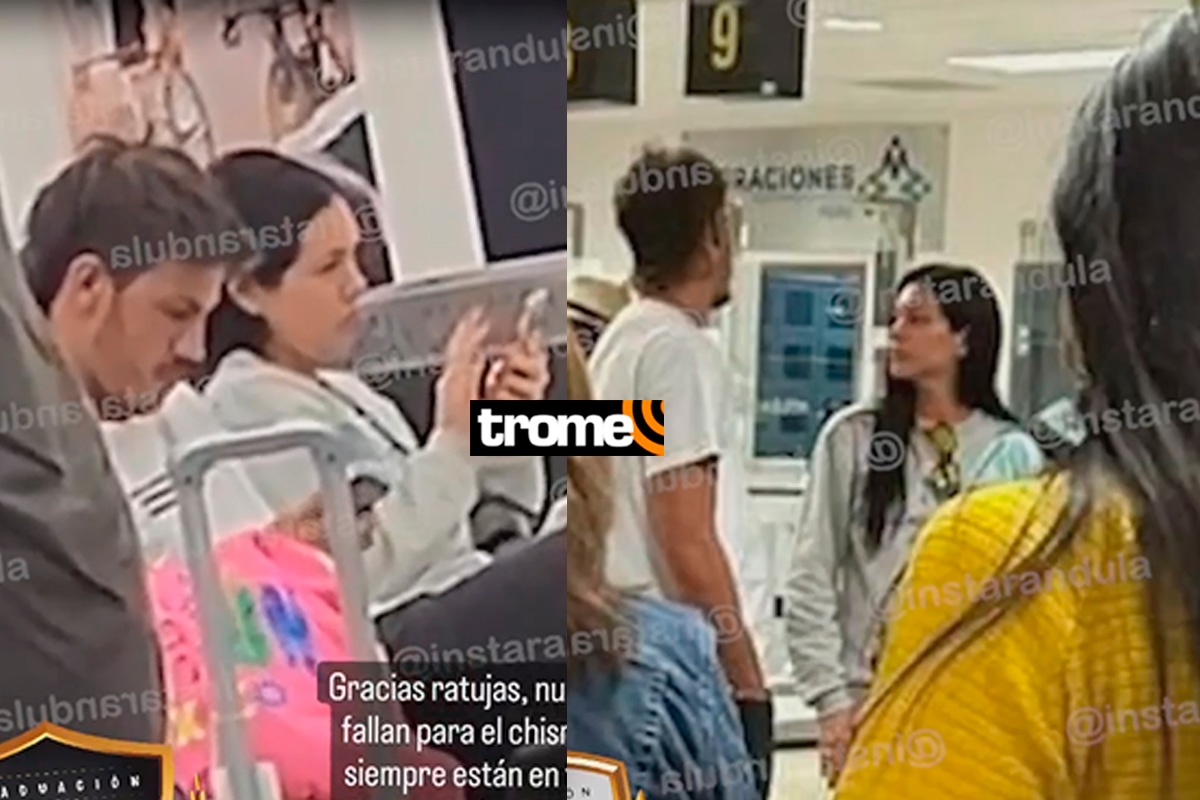 En las imágenes se observa a la ‘chinita’ junto a un joven alto, vestido con short negro y polo blanco. Ambos no se muestran cariñosos, sin embargo, sí que viajaron juntos.
