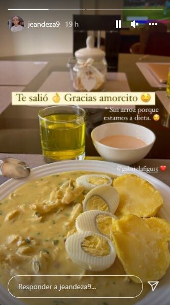 La novia del jugador Jean Deza, Gabriela Alava, quiso engreír a su pareja y se lució preparándole ají de pollo luego de haber cumplido 17 meses como enamorados.