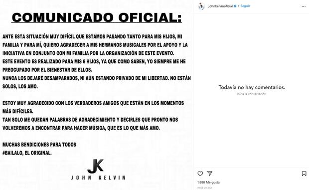 Cabe indicar que la publicación de Instagram de John Kelvin tiene bloqueados los comentarios, para evitar más críticas.