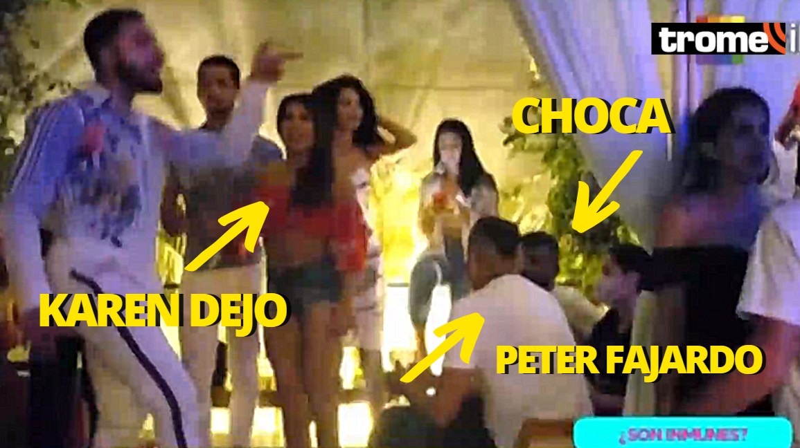 ¡SIN MIEDO A NADA! Karen Dejo, Jaime ‘Choca’ Mandros y Peter Fajardo, productor de ‘Esto es Guerra’, fueron captados en un tremenda juerga que se realizó en una discoteca de Punta Hermosa. Ellos fueron grabados disfrutando de la música y el alcohol con un numeroso grupo de personas.
