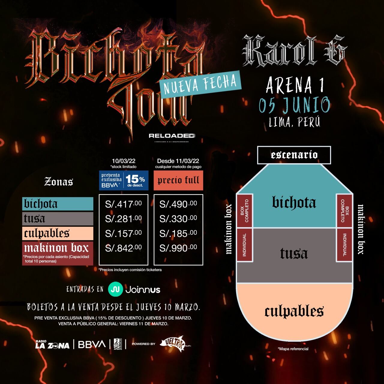 A raíz del abrupto y comentado éxito en ventas que tuvo el concierto de Karol G, la productora y la producción de la artista han acordado realizar una segunda fecha para todos sus fans en Lima. El día para esta inolvidable presentación será el 5 de junio en el mismo recinto, la Arena 1 que está ubicada en la Costa Verde.