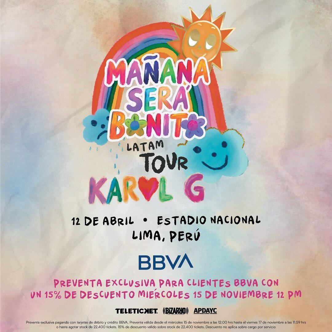 “La espera terminó porque #AbrilSeráBonito Nuestra bichota nuevamente en Lima. ¿Preparad@s para cantar “TQG”, “Amargura”, “Mi ex tenía razón”, “Oki Doki” y más? Inicio de venta: 15 de noviembre Compra tus entradas por nuestra web”, se lee en la página de Teleticket.