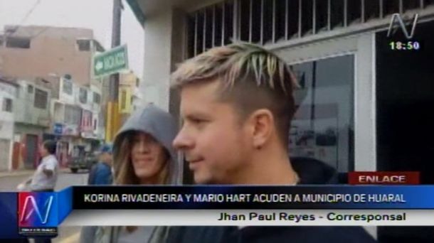 En las imágenes presentadas por Canal N, Korina Rivadeneira y Mario Hart fueron vistos saliendo de la Municipalidad de Huaral, presumiblemente para gestionar documentos referentes a su matrimonio civil.