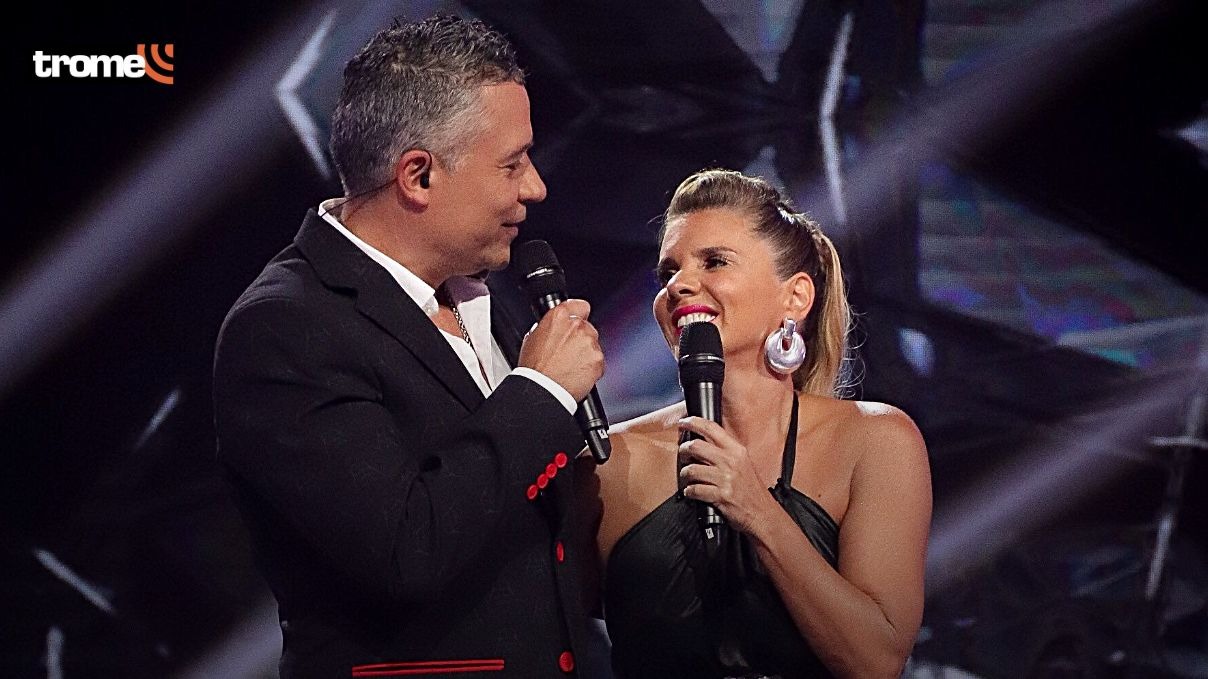 Con un fuerte abrazo y cargada, Mathías Brivio y Johanna San Miguel se saludaron en el primer programa de La Máscara. Ambos recordaron algunas anécdotas que vivieron durante el tiempo que compartieron la conducción de Esto es Guerra.