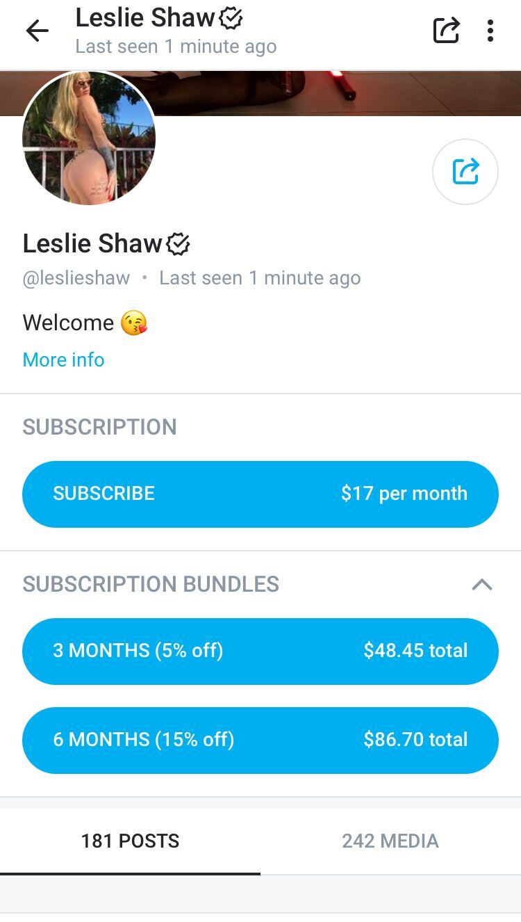 - Leslie Shaw en OnlyFans: 1 mes x 17 dólares