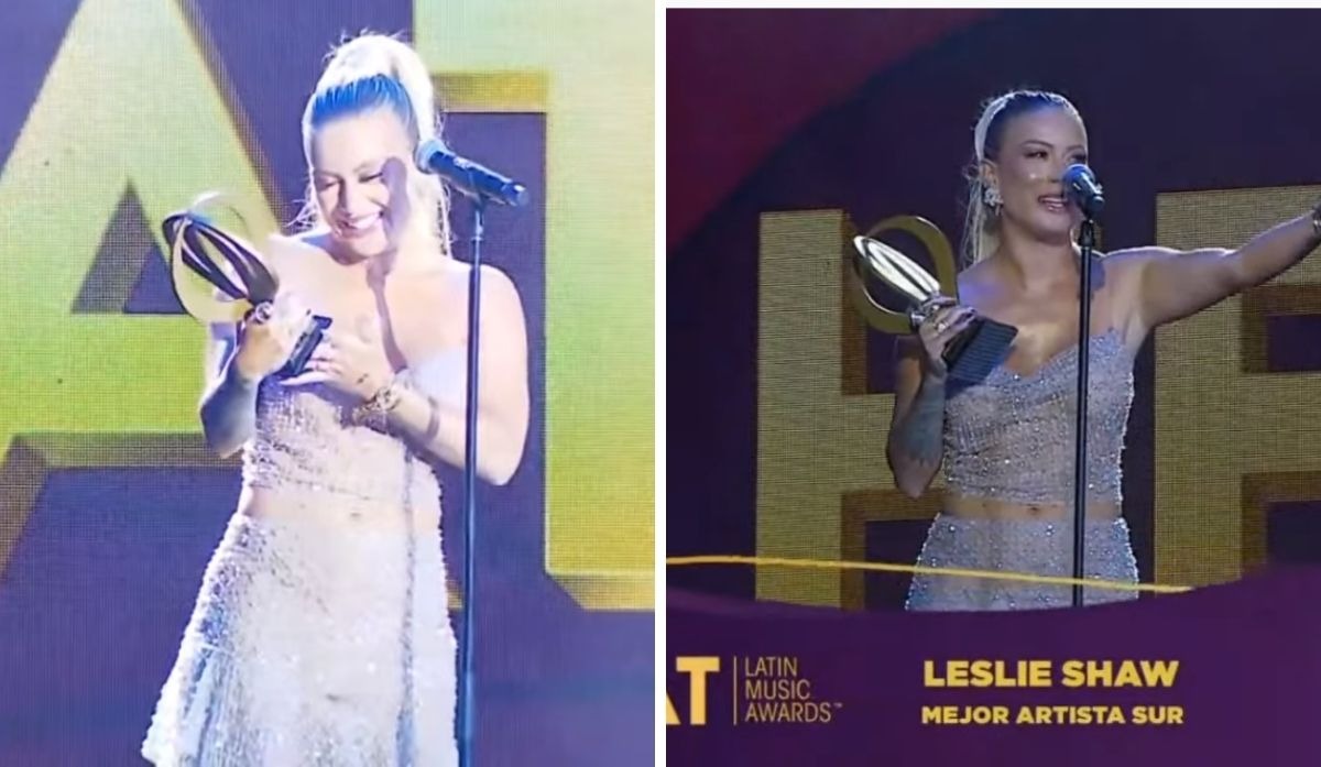 Leslie Shaw no deja de brillar en los Premios Heat 2020. Hace una hora se presentó con su tema “Estoy Soltera” y ahora alza el premio a “Mejor Artista sur”.