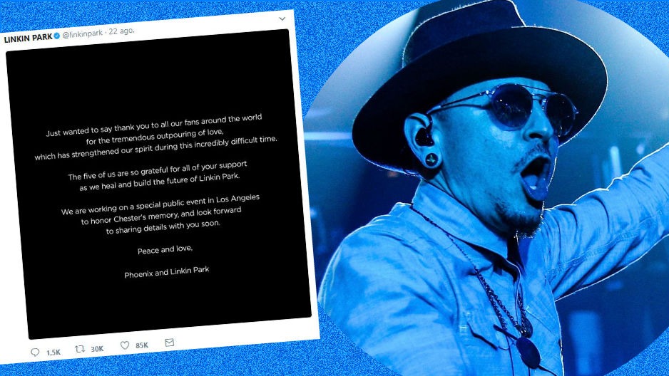 En este tuit, Linkin Park agradecía el cariño y apoyo de sus fans en los días posteriores a la muerte de Chester Bennington. Además, los chicos del grupo anunciaban un show en honor al artista.