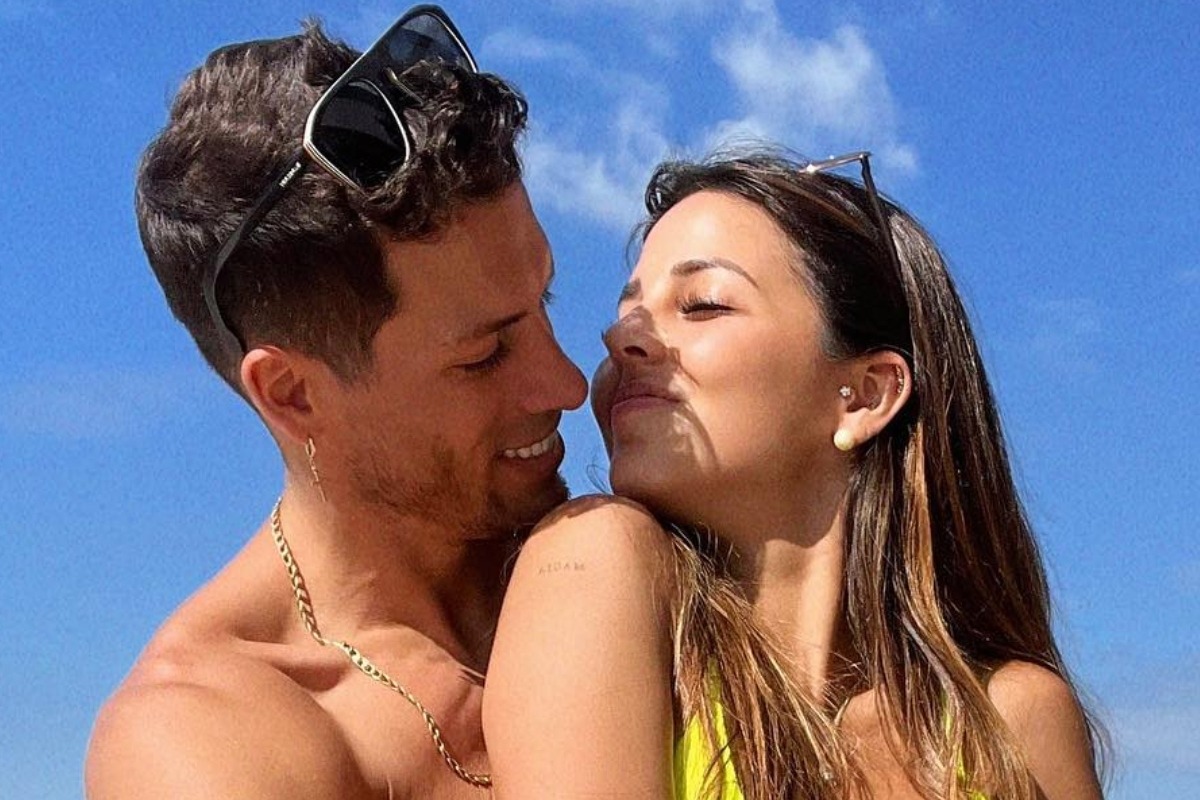 Según se pudo ver en las imágenes, la pareja posó en la playa. Ella lucía un bikini de color amarillo, mientras que Patricio tenía un short rosado y el torso desnudo.