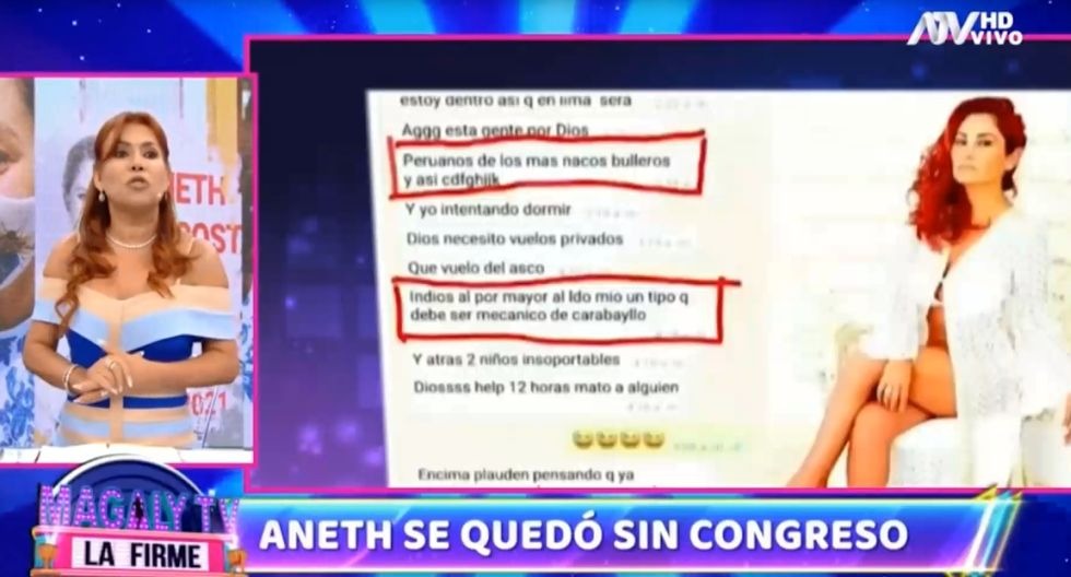Magaly Medina se burló que Aneth Acosta, postulante al Congreso de la República por Acción Popular, no entró al Parlamento peruano, consiguiendo un poco más de mil votos y le recordó cuando lanzó frases racistas y discriminatorias contra la gente pobre.