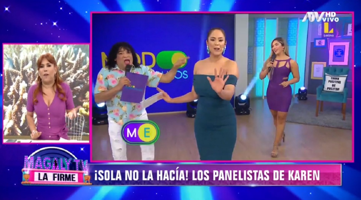 Magaly empezó su programa indicando que era un día de duelo para la tv nacional. De este modo, la conductora se burló de la cancelación de Modo Espectáculos. “Es un día triste, un día de luto nacional. Lo que esta bruja predijo se hizo realidad, Latina retiró el programa de Karen ¿Existía el programa?”, precisa.