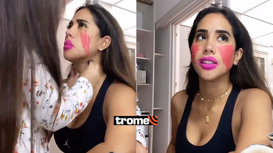 En el video se ve como la pequeña Mía coge uno de sus maquillajes y lo aplica cobre la mejilla de la conductora. Melissa Paredes deja que su hija de rienda suelta a su creatividad sobre su rostro.