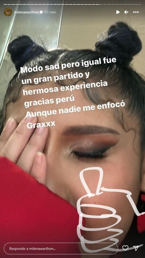 A través de su cuenta de Instagram, Milena Warthon grabó los momentos previos al salir al Estadio Nacional y la emoción que la desbordada. Tras ello, también se sinceró diciendo que no apareció en pantallas como lo esperaba.