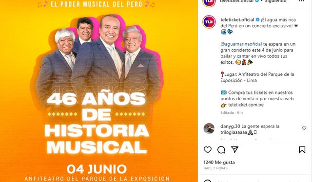 La empresa de venta de entradas en Perú, ha confirmado que el concierto de Agua Marina se llevará a cabo el domingo 4 de junio, tal como se había acordado previamente.