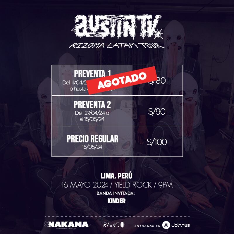 La presentación de Austin TV en Lima promete ser un evento imperdible para los amantes del post-rock y la música en vivo. Las entradas están disponibles en Joinnus, y se espera que el público disfrute de una noche llena de emociones y buena música en el Yield Rock. Para más información y compra de entradas, entra al siguiente enlace.