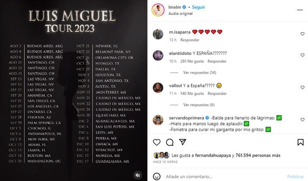La fanaticada de Luis Miguel en toda América cuenta los días para reencontrarse con su máxima estrella. El cantante mexicano anunció vía sus redes sociales, las fechas y sedes de su gira 2023, la misma que iniciará en el segundo semestre de este año, aunque desafortunadamente no incluirá todos los países en donde “Luismi” tiene una legión de millones de seguidores.