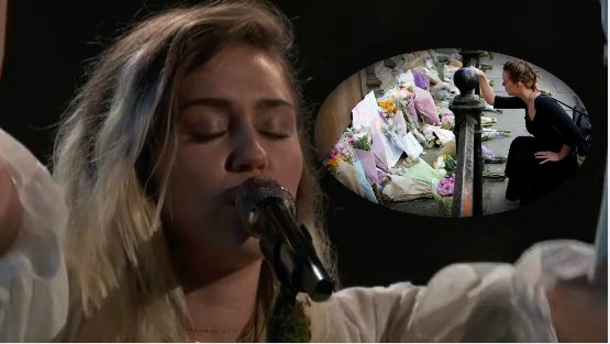 Miley Cyrus continuó con sus compromisos labores, pero aprovechó su presentación en The Voice, La Voz, para poder dedicar algunas palabras de aliento. “Quiero dedicar esta canción a mi gran amiga Ariana Grande y a todos lo que han experimentado esta tragedia. Mi corazón está con ustedes”, dijo la cantante antes de iniciar su canción Malibu.