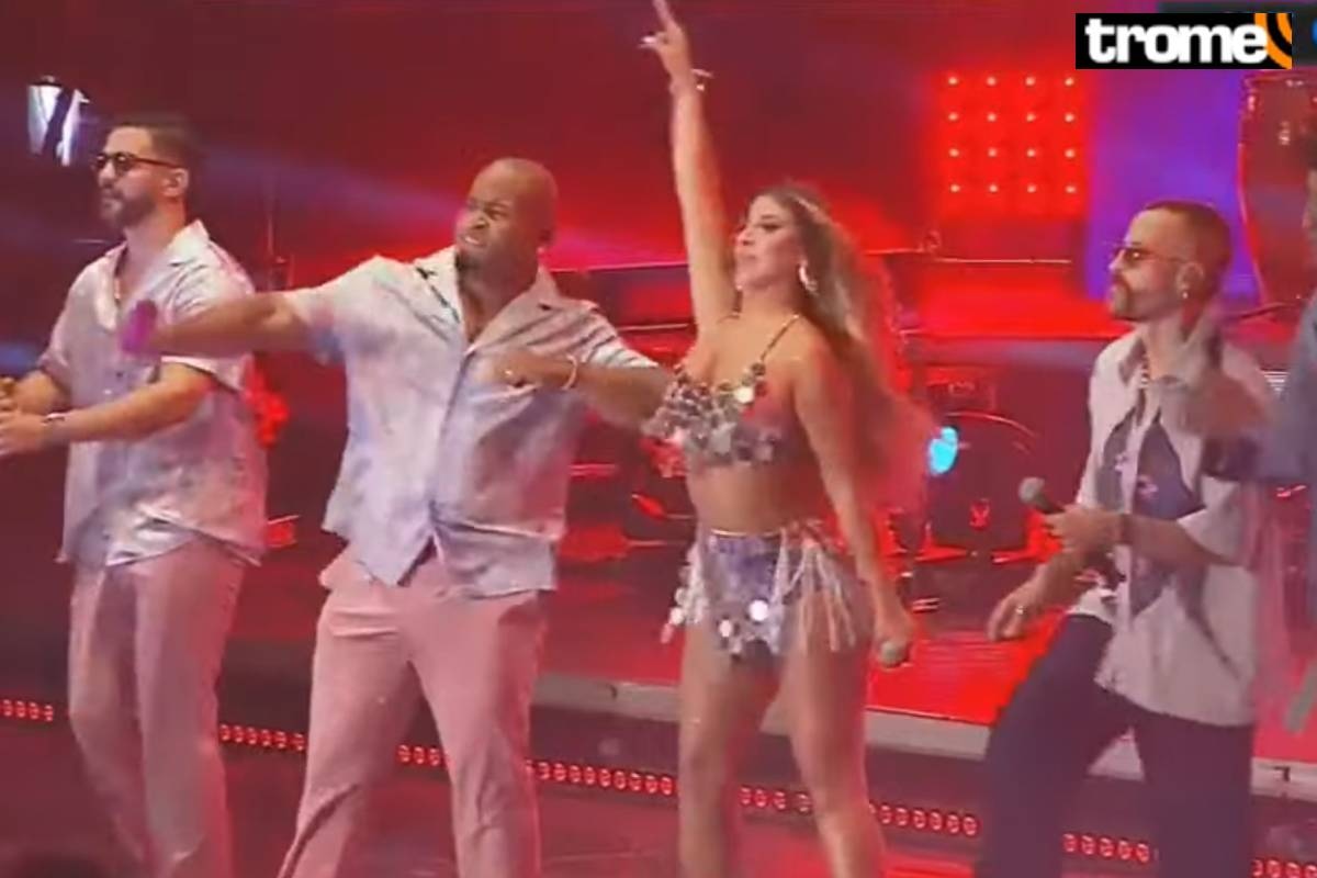 Ciertamente, fue la peruana quien ingresó en primer lugar junto al grupo colombiano. Seguidamente, entraron en escena los demás y ella se retiró. No obstante, antes de terminar el show, todos se unieron y cantaron al unísono.