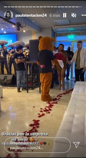 La cantante aceptó casarse pese a los escándalos que protagonizó el jugador por una supuesta infidelidad y compartió el emotivo momento con una fotografía que publicó en sus Stories de Instagram, junto a la que escribió: “Gracias por la sorpresa, mi amor @eduardorabanal1997″.