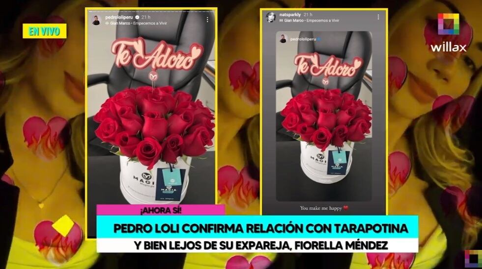 Pedro Loli compartió, a través de sus historias de Instagram, un arreglo floral de rosas rojas decorado con un cartelito con la frase: “te adoro”. Un romántico Pedro Loli compartió la fotografía de este detalle que tuvo hacia su novia y colocó la canción “Empecemos a vivir” de Gian Marco.