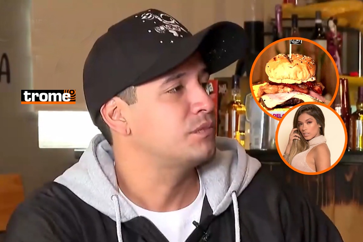El exseleccionado fue entrevistado dentro de su restobar, local que abrió hace unos meses para sustentarse economícente. Durante la conversación, una de las meseras le trajo una hamburguesa a Yaco para que deguste.