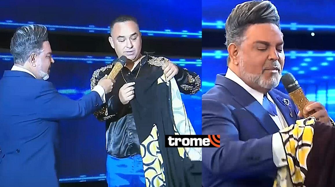 “Vengo a hacerte un obsequio, con mucho cariño. Fueron los mejores pasos en la historia de la televisión peruana de baile”, dijo Roberto Martínez mientras le entregaba su popular prenda a Andrés Hurtado.