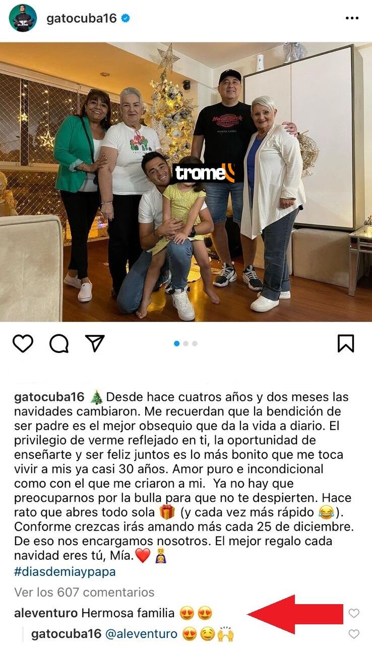 “Hermosa familia”, fue lo que escribió Ale Venturo en dicha postal por Navidad y fue respondido inmediatamente por Rodrigo, quien no dudó en ponerle corazones y un emojis de amor.