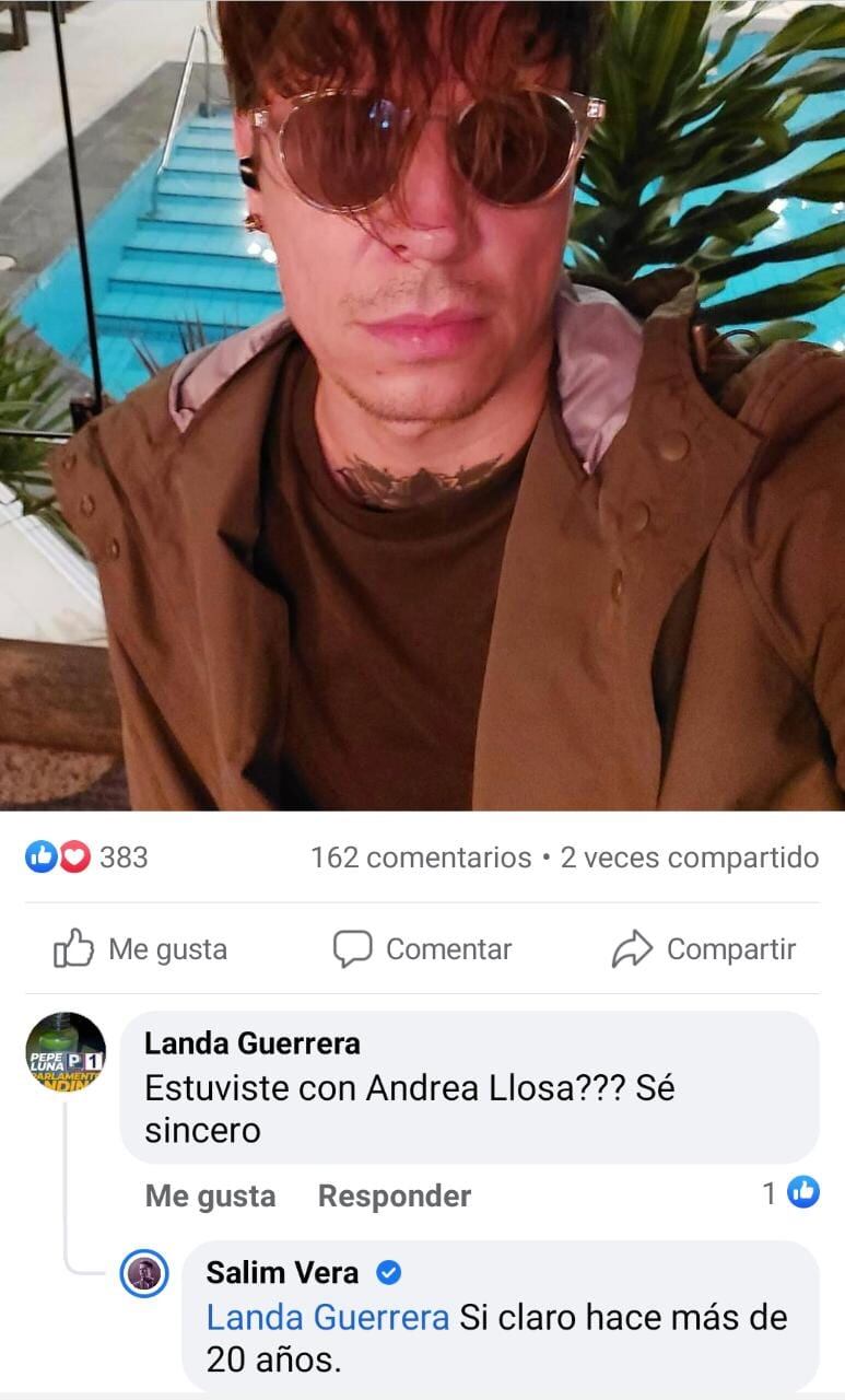 Uno de los seguidores del rockero le escribió: “¿estuviste con Andrea Llosa? Sé sincero”. Salim Vera respondió así: “sí, claro. Hace más de 20 años”.