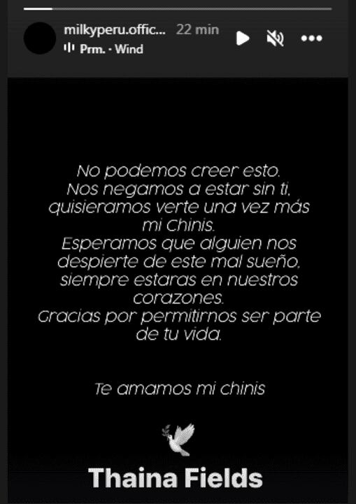 A través de redes sociales, Milky Perú aprovechó en compartir su asombro ante la muerte de Thaina Fields -quien era una de sus colaboradoras-, señalando que esperan “despertar de este mal sueño”.