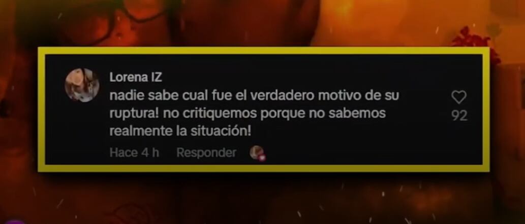 “Nadie sabe cuál fue el verdadero motivo de su ruptura. No critiquemos porque no sabemos realmente la situación”, dice el comentario.