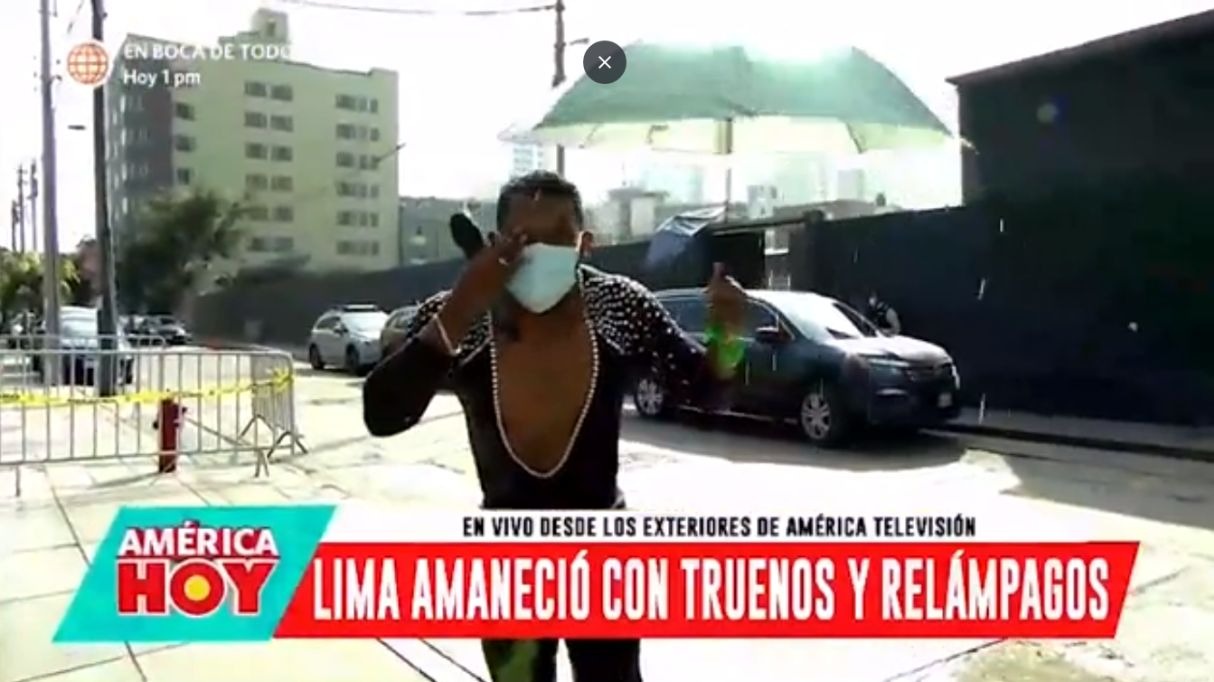 “Buenos días corresponsal, desde qué hora empezaron los relámpagos en la ciudad”, le consultó la hija de Gisela Valcárcel. “Bueno ha sido una cosa terrible, no les podría dar con exactitud la hora... Yo siempre preparado con mi paragua, porque ahorita está garuando”, respondió ‘Giselo’.