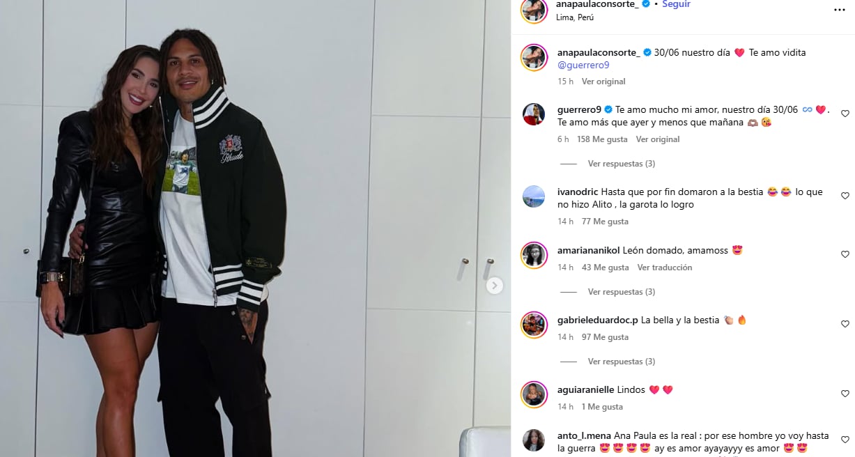 “30/06 Nuestro día. Te amo, vidita”, escribió, al parecer la parejita estaba celebrando un aniversario. A lo que Paolo Guerrero le respondió muy amoroso: “Te amo mucho mi amor, nuestro día 30/06. Te amo más que ayer y menos que mañana”.