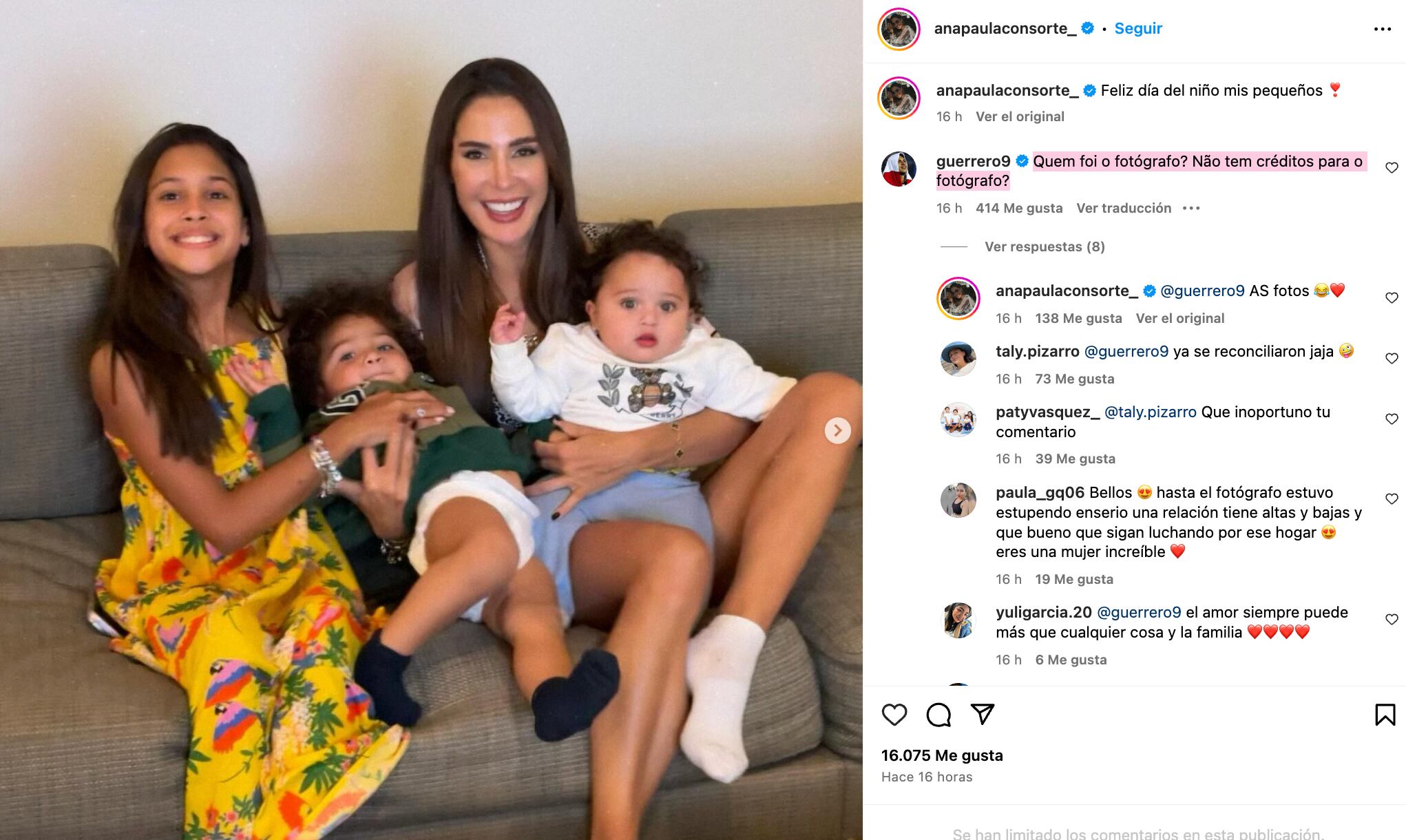 “Feliz dia das crianças meus pequenos (Feliz día del niño, mis pequeños)”, escribió Ana Paula, en la publicación donde se dejó ver muy feliz, pero donde no aparece Paolo Guerrero.