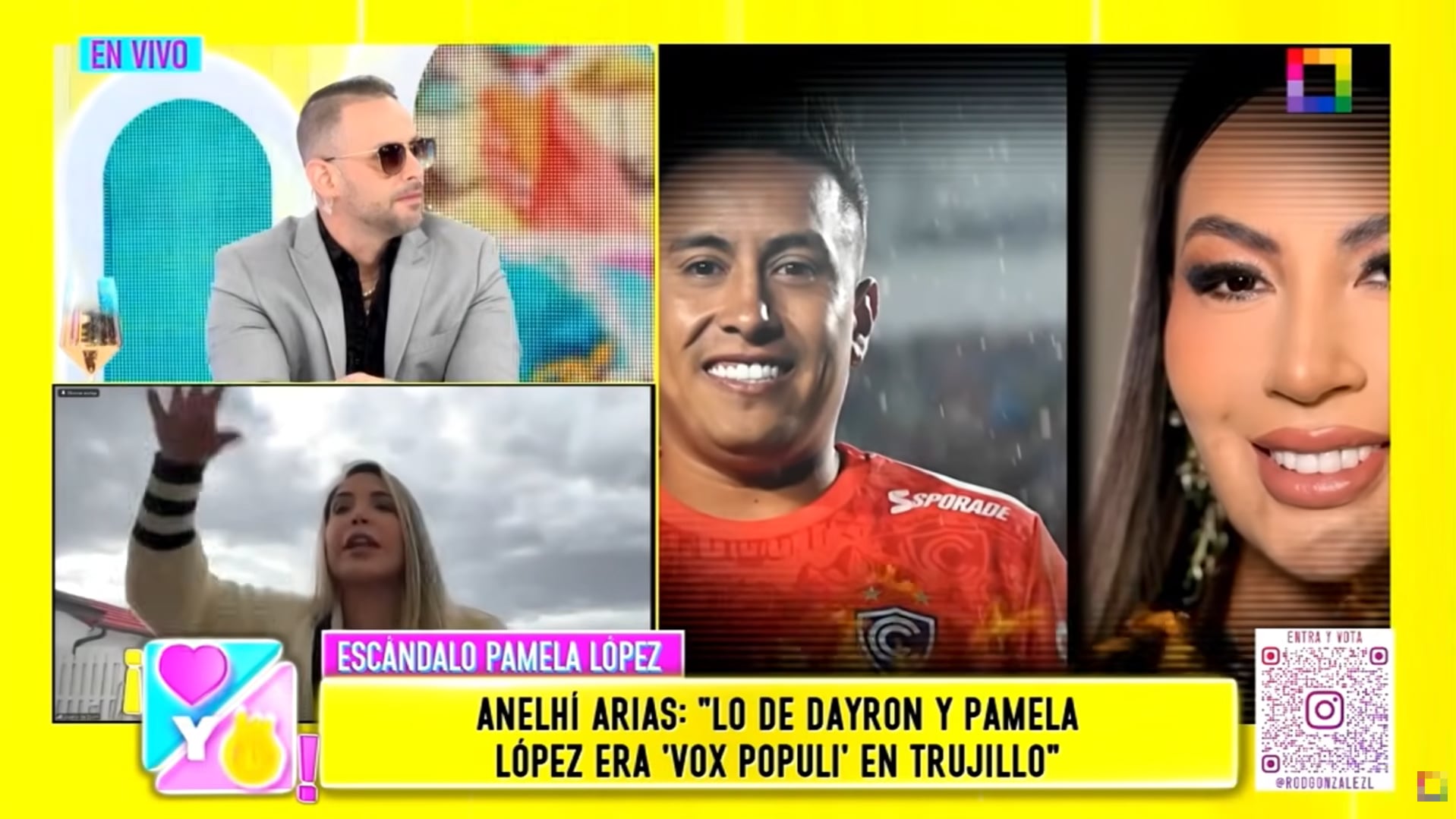 En medio de la entrevista, Anelhí Arias decidió enlazarse en vivo con el programa de espectáculos, para revelar más detalles del ‘affaire’ que hubo entre su expareja y la trujillana.