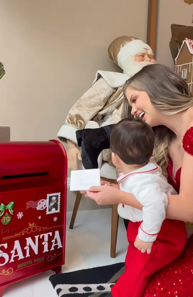 Además, la presentadora mostró una cuidad navideña, con un tren incluído, en otra zona decoraron con casas de jengibre, Papá Noeles y hasta un buzón de cartas, donde su hijito depositó su primera cartita.