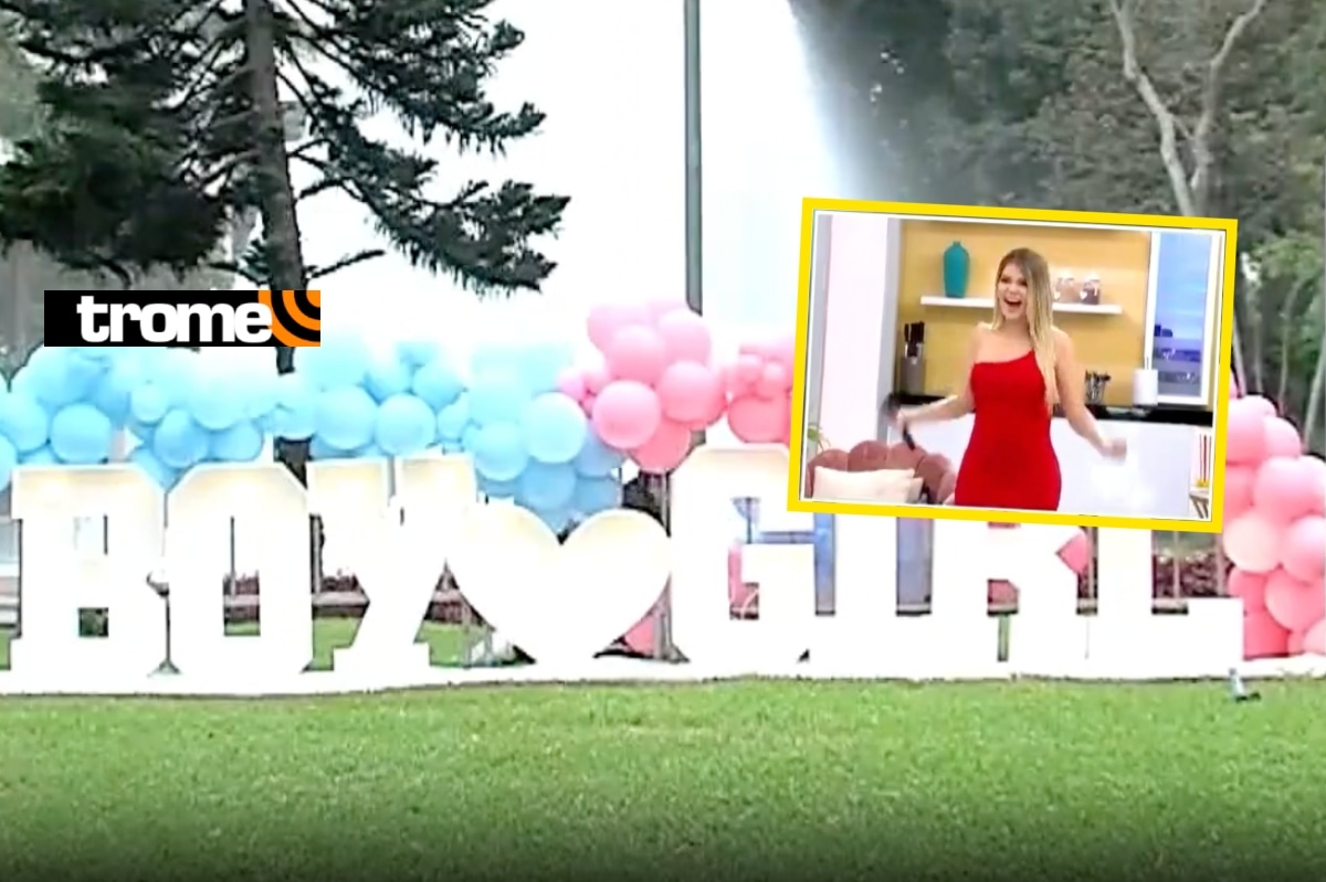 La revelación del sexo del bebé se realizó en el Parque de las Aguas y fue Edson Dávila el encargado de activar la sorpresa. Finalmente, se puede ver la salida del humo azul, señal de que se trata de un varoncito.