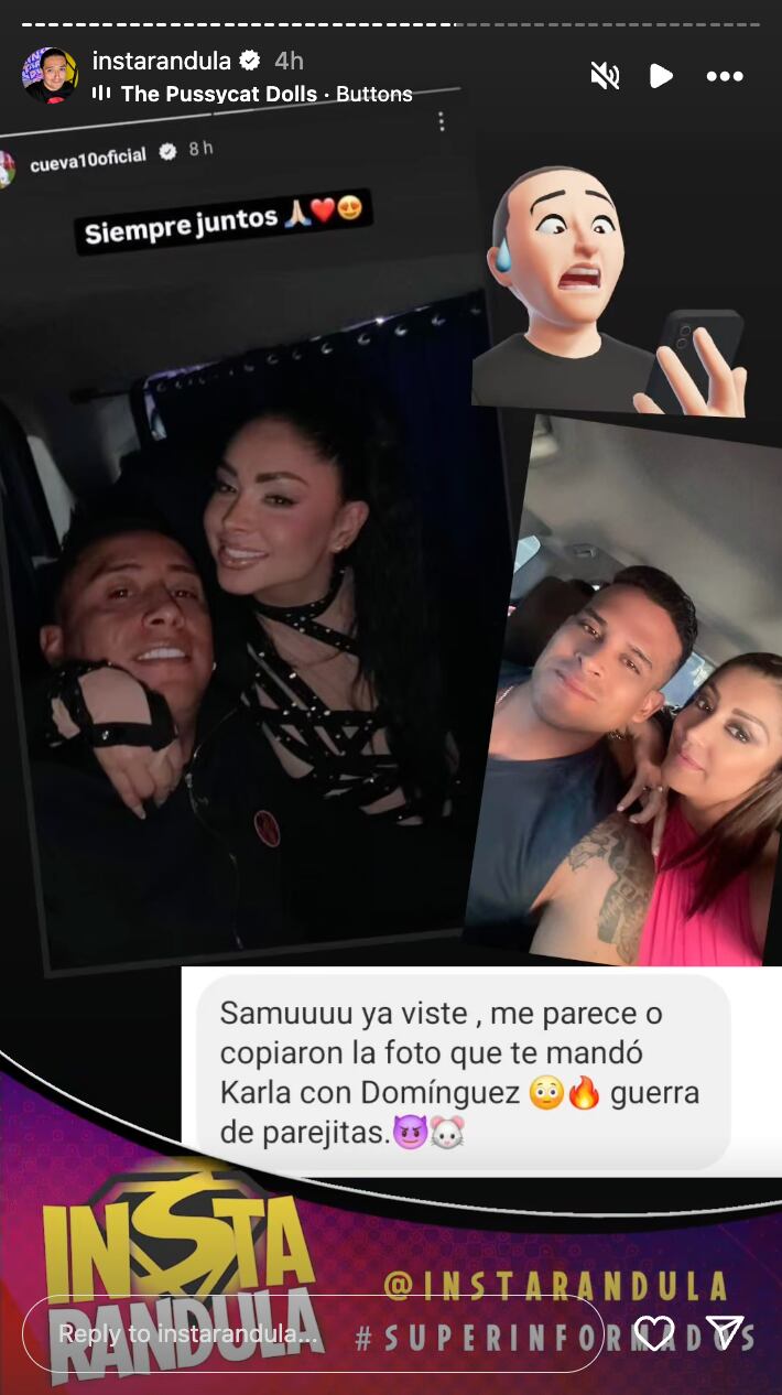Los usuarios de Instárandula evidenciaron la cierta similitud entre la foto de Christian Cueva y Pamela Franco con la de Christian Domínguez y Karla Tarazona.