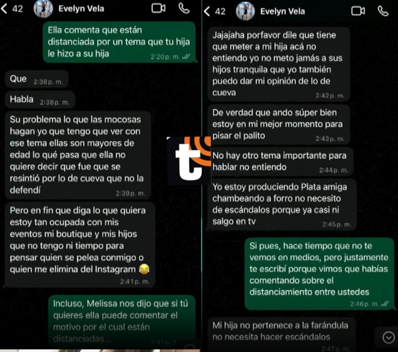 La empresaria Evelyn Vela aclaró que su distanciamiento con Melissa Klug no se debió a un conflicto entre sus hijas, como lo señaló su examiga, sino a la falta de apoyo que recibió cuando la vincularon con el futbolista Christian Cueva.