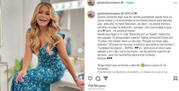 Gisela Valcárcel sorprendió a sus seguidores de redes sociales al anunciar que no estará frente a las pantallas este 2023, luego de varios años ininterrumpidos de conducir sus famosos realities de los sábados.