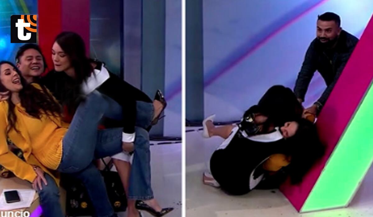 Jazmín Pinedo carga a Rebeca Escribens y ambas sufren estrepitosa caída