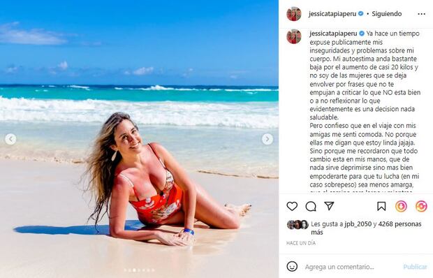 “Fue un post valiente. Mucha gente habla del sobrepeso y dicen que es algo que no debe importar mucho, que lo importante es la belleza interna. Pero es algo que importa. En el fondo sí tiene impacto en las personas”, afirma.