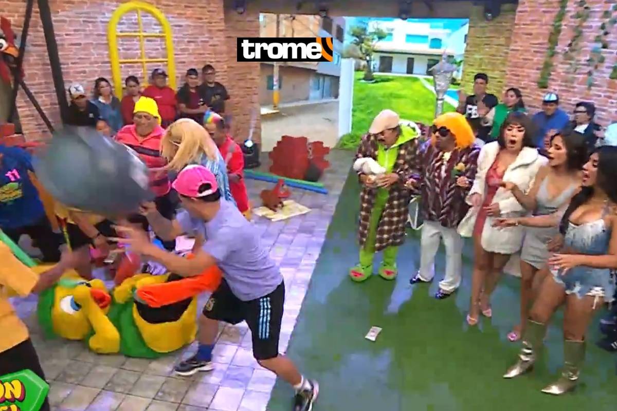 ¡Volvió una vez más! Carlos Álvarez apareció en el “Jirón del humor” caracterizado como la vieja pituca de La Molina y se enfrentó a los vecinos de Ate Vitarte, lo que terminó en una “batalla campal”.