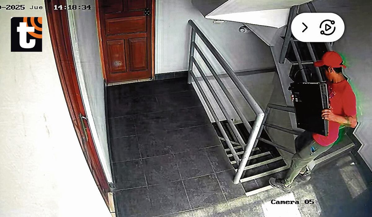 Las imágenes de seguridad muestran cómo una camioneta negra, equipada con una parrilla en la parte superior, se estaciona en las inmediaciones del local. En el video se observa a dos sujetos descender del vehículo y llevarse los equipos de sonido sin levantar sospechas.