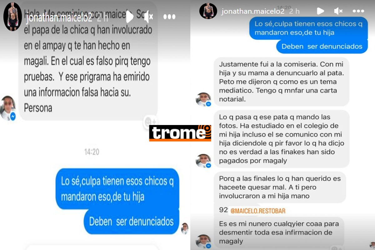 En los chats se ve como el hombre indica que han involucrado a su hija y que todo lo que se ve en la nota de Magaly es falso. Además, que se dirigió a la comisaría para denunciar a los implicados.