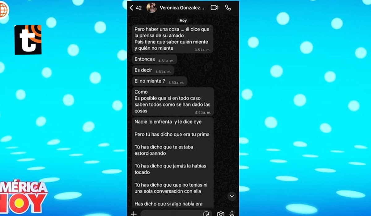 “Nadie lo enfrenta de esa manera y como llegamos a un acuerdo por el bien de su familia y su tranquilidad, entonces él prefiere como típico narcisista quedar bien… el narcisista odia ser descubierto y cuando sucede hace lo posible por lavarse las manos y envolver todo a su manera”, expresó Verónica González ante las cámaras.